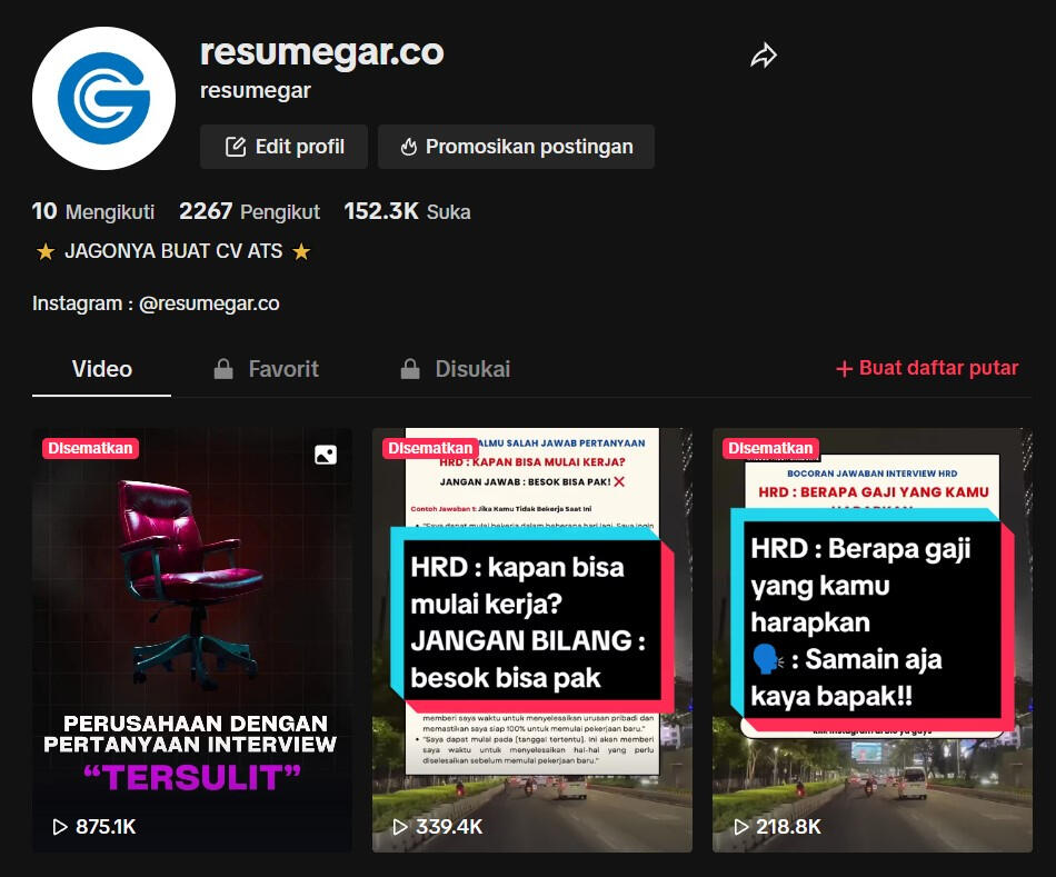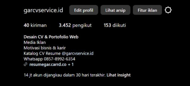 I, Nada Farhan Naja, was born on May 8, 2004, in Pringsewu, a small town in Lampung Province. I began my career as a marketing staff at CV Wijaya, a laundry fragrance company based in South Jakarta. During my one-year tenure, I marketed products through online channels like Instagram and TikTok, as well as offline methods, including direct visits to nearby laundries. Significant achievements during this period included increasing the Jakarta branch's revenue by 20% within three months and establishing a customer database with hundreds of clients.Subsequently, I transitioned to the role of Digital Marketing Manager at Laundry Pelakor under the leadership of Ms. Katty Sinsya. In this role, I managed the company’s social media presence, particularly on Instagram (@laundrypelakor.id) and TikTok (@laundrypelakor.id). Despite having limited direct leadership experience, I successfully collaborated with influencers, contributing to the growth of Laundry Pelakor’s Instagram profile to 7,471 followers.Furthermore, I am the founder of 'Gar Capital,' specializing in CV creation, non-domain website development, and cover letter writing. I officially launched the business on February 1, 2024. Despite being relatively new, "@resumegar" has served hundreds of clients since its inception. Our Instagram profile, "@resumegar," has reached a total of 14,000,000 reach to date, with the current follower count at 6,500. Additionally, our TikTok profile, "@resumegar," has garnered a total of 3,200,000 views.I possess a deep understanding of the 'Andrew Tate Model' algorithm concept, also known as the 'Macro Micro Content Strategy.' I excel at maximizing Instagram account engagement rates; for instance, the "@resumegar" profile achieved a 99.841% engagement rate and a reach rate of 130.411% within one month.I am committed to continuously improving my skills and making valuable contributions to the industry.